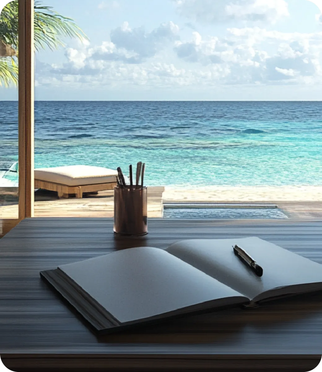 Geheel in de stijl van het resort worden tools, teksten, oefeningen, vragen en andere vormen van inspiratie je aangeboden in de vorm van verwelkomende geschenken, delicate appetizers, persoonlijke notities, verfrissende smoothies en inspirerende kokosnoten.